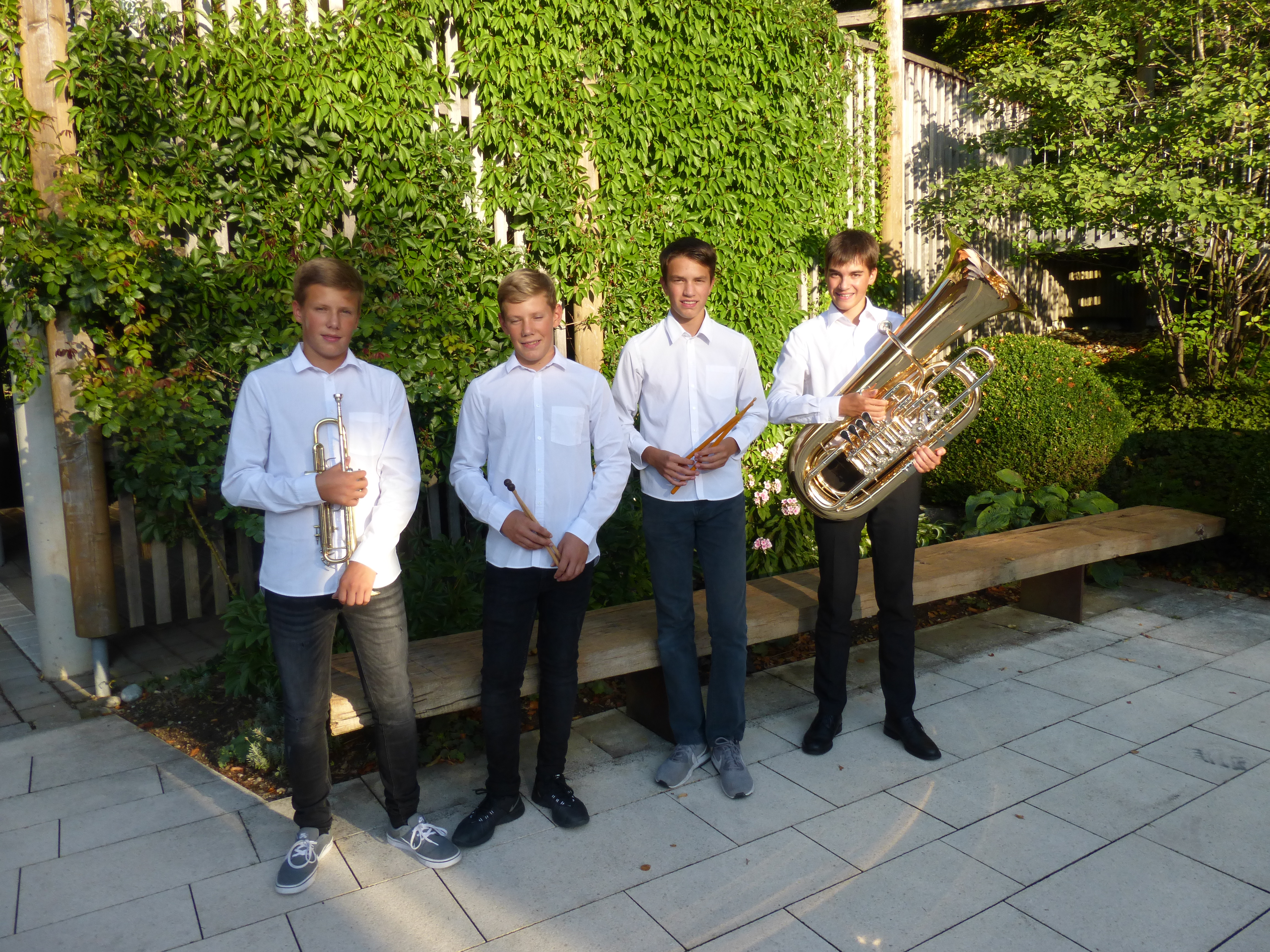 ide Trompete) Remigius Erne, Valentin Räth (beide Schlagzeug) und Magnus Räth mit der Tuba (D3).