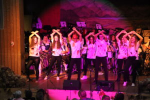 Dann folgten die legendären MVA-Singers. „Deswegen sind ja die meisten Leute gekommen“ , sagte Stefan Braun in seiner Ankündigung. „Mit besten Grüßen“ und „Probier’s mal mit nem Bass“ bewies einmal mehr, dass Musiker, insbesondere Arnacher Musiker, auch gut bei Stimme sind. Schaurig schön wurde der von Katie Kible mit einigen Jungmusikanten eingeübte Tanz zu Michael Jacksons Thriller.