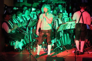 Auf die Jungmusikanten folgte die Partyband, bei der sich Magnus Räth beim jazzigen „Farmers Tuba“ Verstärkung von seinem Onkel geholt hatte. So richtig austoben durfte sich Stefan Braun bei der „Bierbrauerstochter“ als Sänger und Schlagzeuger.