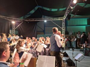 Als erstes trat dann die Musikapelle Heggelbach an. Anschließend der Musikverein Arnach und zum Schluß der Musikverein aus Haslach. Mit unserer „Nachtigall“ Lisa Gottschling, sowie Stefan Braun, Kathi Kible, Berthold und Maxi Hiemer konnten wir das Publikum bestens begeistern.