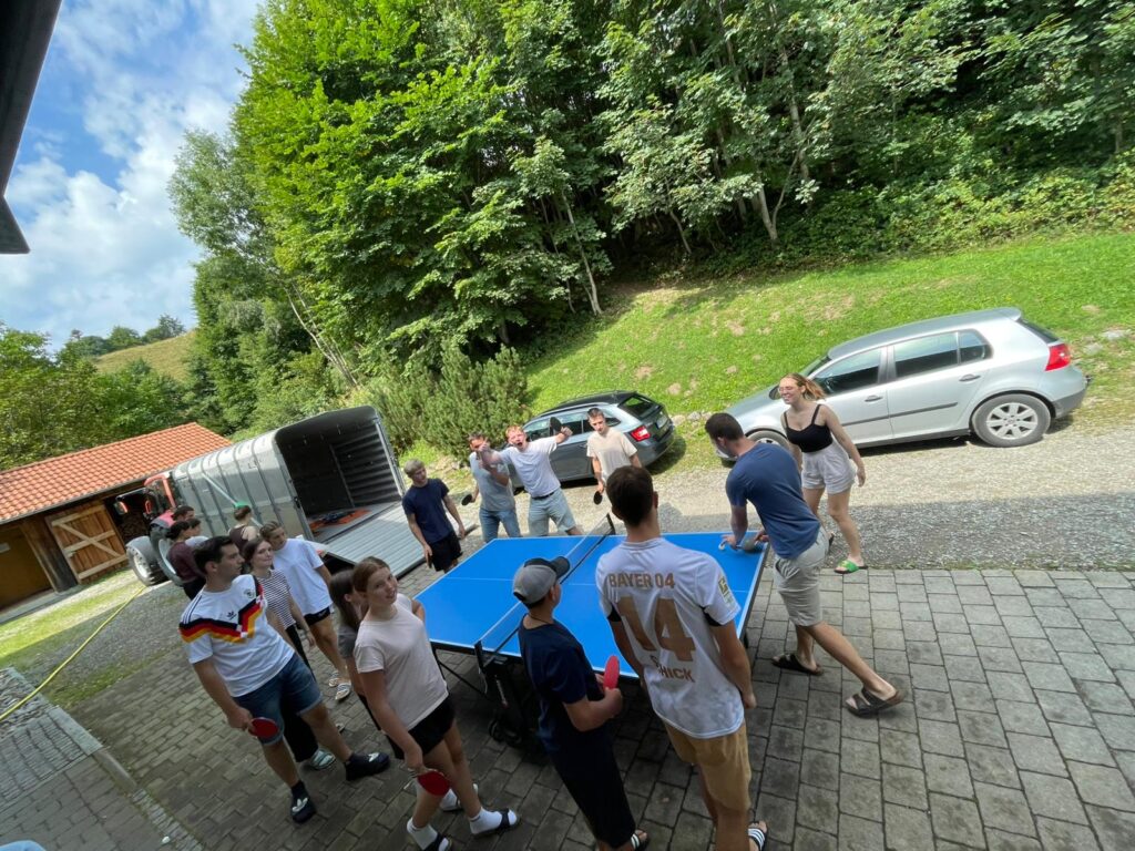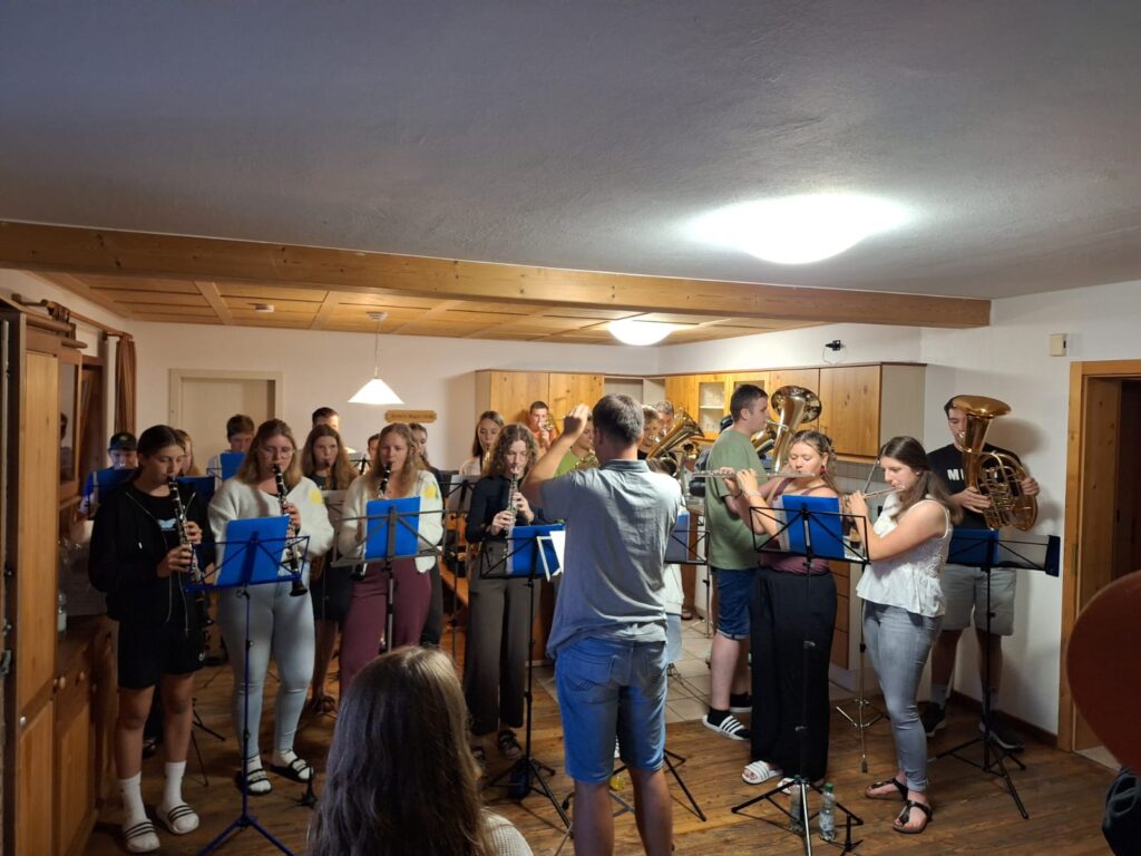 In der letzten August-Woche, vom 25. bis 29. August, versammelte sich die Jugend des Arnacher Musikvereins zur standesgemäßen „Jukahütte“ im Kreuzbachthal. Neben den täglichen Proben, in denen ein abwechslungsreiches Programm für das Abschlusskonzert einstudiert wurde, standen weitere Aktivitäten auf dem Programm. So ging es am Dienstag zum Baden an den Beurener Badsee, am Mittwoch führte eine Schnitzeljagd um den Eschacher Weiher herum. Am Donnerstag sollten sich die verschiedenen Gruppen in diversen Minispielen schlagen. Wetterbedingt kam es dieses zu einer Premiere, denn das Abschlusskonzert, zu dem die Eltern am letzten Abend des Hüttenaufenthaltes eingeladen wurden, musste drinnen stattfinden. Nach reichlich Applaus folgte die Präsentation der Wochenaufgabe, bei der jede Gruppe eine Theatersequenz aus den letzten 5 in Arnach aufgeführten Theaterstücke nachspielen durfte. Hierbei konnten die Jugendlichen ihrer Kreativität freien Lauf lassen.